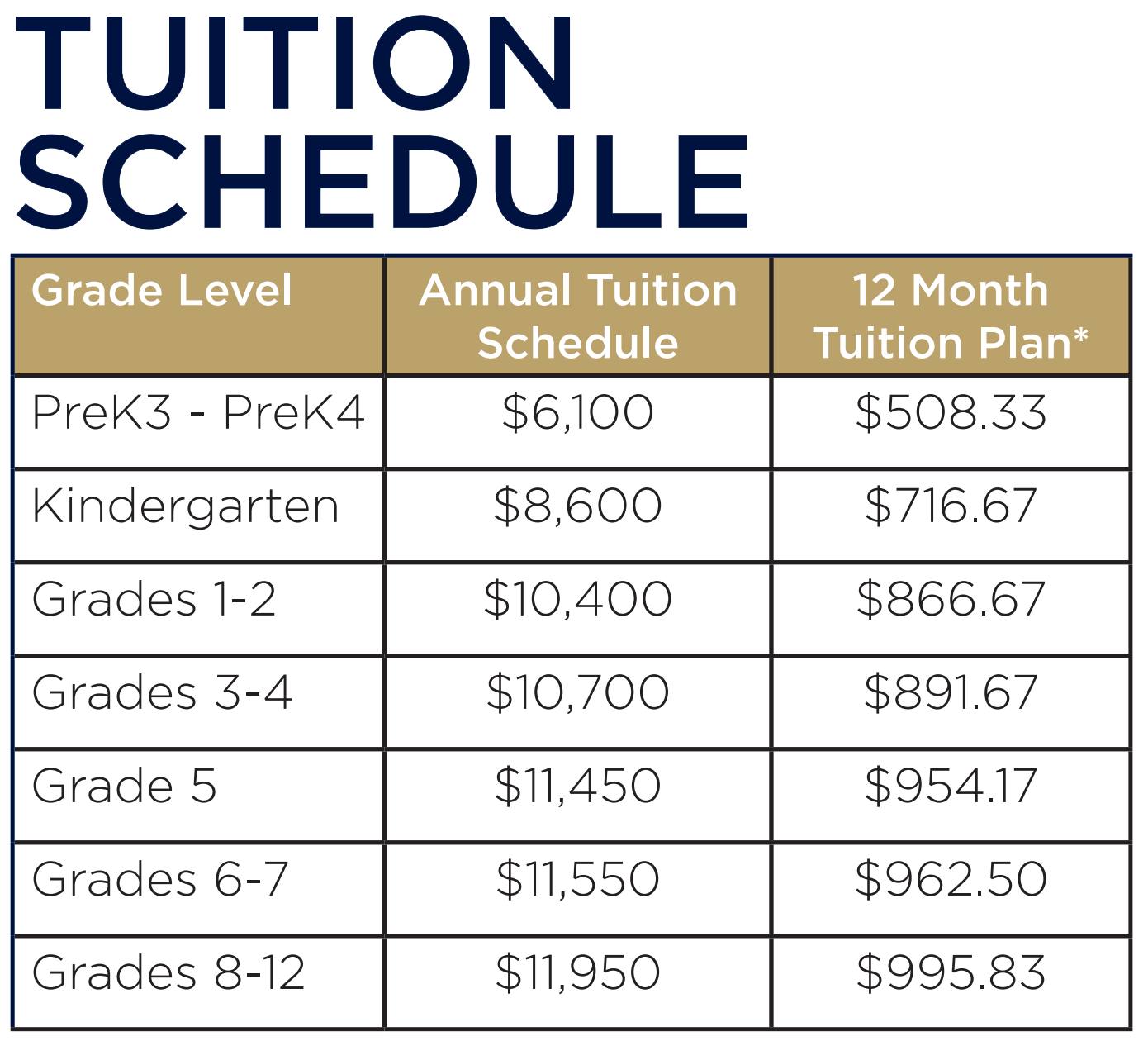 All-inclusive tuition - two payment option. We encourage you to view the below tuition rates in light of this potential aid. We delight in working with families to help make education at Veritas Academy work for you.